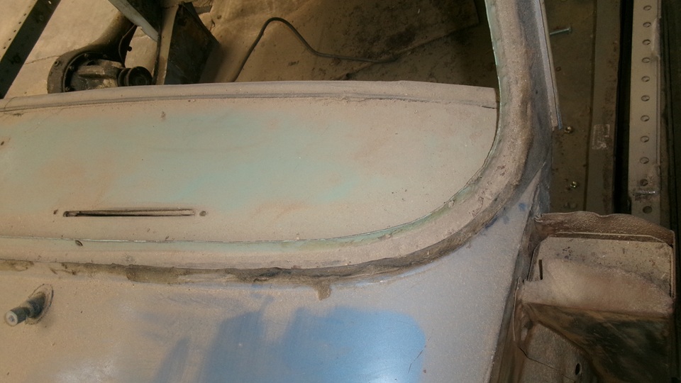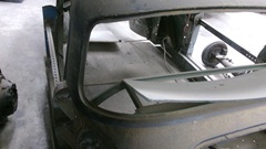 The heater shelf looks good, could touch off a little surface rust in the wiper motor area, Might need a few cage nuts. One more view inside the body nose before we move on.
