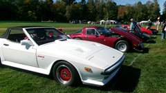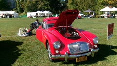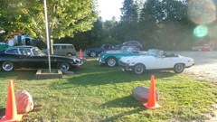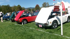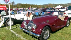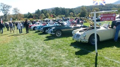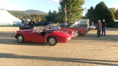 Breakfast in Morrisville, VT, then 10-miles south back to Stowe, VT for the car show. We had registration number 202, filed a month ago, so maybe 300 or so British cars present today (not counting a couple hundred visitor cars parked in the next field). After getting parked in the right line, next business was to walk around nearly two hours taking pictures of the show cars, mostly in small groups. Starting with MGA, see if you can count them, I'm not counting.