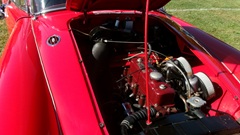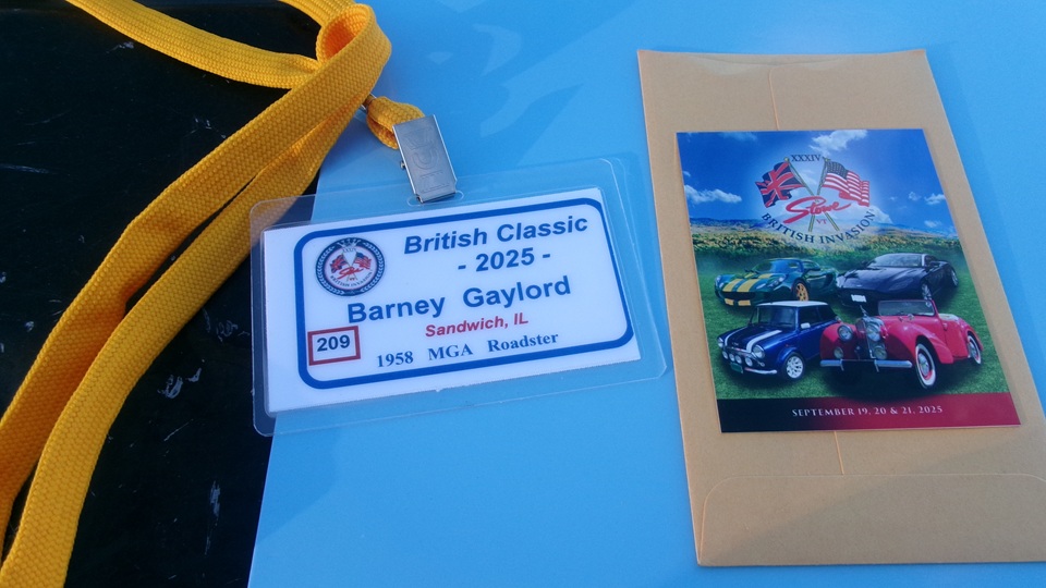 Then heading north through Vermont for an 5-pm appointment to check into The British Invasion car show in Stowe, Vermont, Turned off of VT-108 onto I-89 north, and promptly blew a head gasket while winding the engine up for the long uphill entrance ramp. Bummer, we don't have time for this right now. Cursory inspection revealed combustion gas blowing directly tout the back of the head gasket at the rear head bolt location. Hadn't seen failure at that location before. Oil pressure and water temperature okay, doesn't look to serious, so we opted to remove #4 spark plug to kill combustion and drop the pressure, and drive on running on three cylinders. Sounds like a Briggs and Stratton single cylinder with a bad muffler, but it runs pretty good on three cylinders. We cruised into the car show registration at the Stowe fairgrounds right on schedule at 5:30-pm.