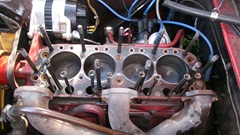 Not long ago we were installing a new vacuum signal pipe from rear carburetor to distributor, and there is a large P-clip to hold the pipe on the rear head stud. Since the factory did not see fit to install a longer stud in that location, there is not enough thread to add a second nut. So the rear head stud nut has to be removed to R&R the big P-clip. And wouldn't you know, I forgot to re-torque that rear head nut after installing the new vacuum pipe. In fact I just removed that rear head nut with my fingers, without touching it with a wrench. So naturally the head gasket blew out the back right next to that stud.Bummer. Dammit. Kick me. But once you figure out what the problem is, it always turns out to be something simple. At least we can be confident that the new head gasket will be a proper fix and should hold up okay, assuming it gets properly torqued down of course.