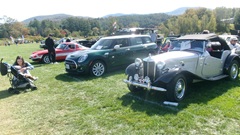 Two slightly larger Morgan, a 4-4 (little Morgan with 1600 engine), a Plus-4 with larger Triumph engine, and a 2009 Mini Cooper.