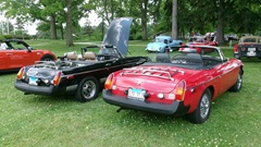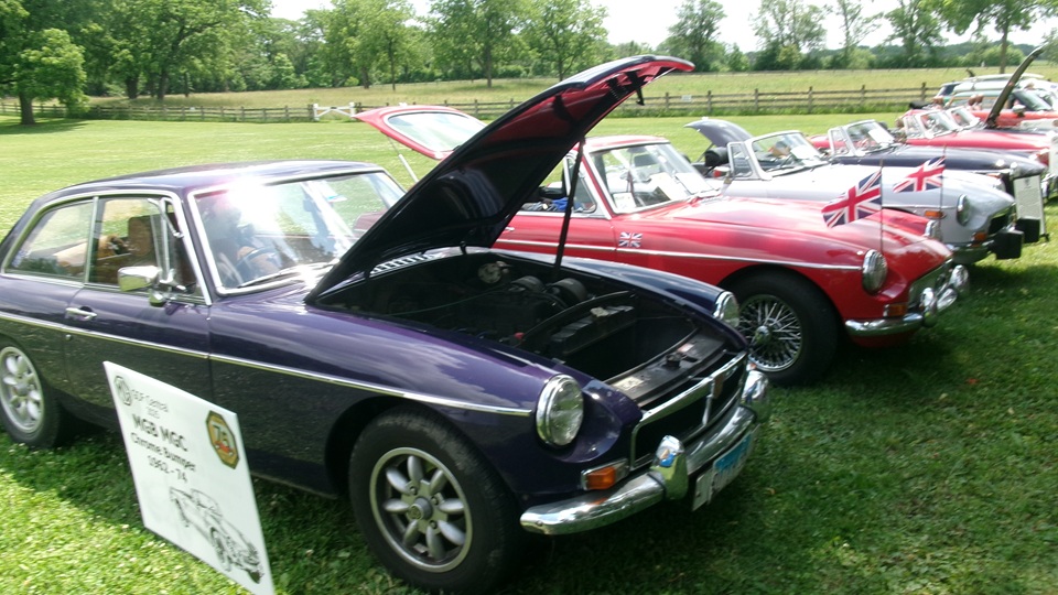 At least six MGB present, but the dark blue GT first in line is an MGC.