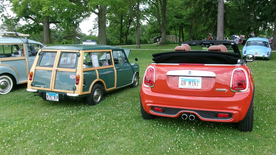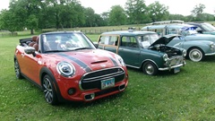 Getting down to the fun stuff (well really it's all fun). One modern Mini, one vintage Mini Clubman woody wagon, one Morris Minor woody wagon. After all the drooling and voting, it was time for a short break, then back to the hotel for one more tech session. We got a little rain just as we were getting back to the hotel. Good timing. A lot of the show cars were tucked into the parking garage to be out of the weather.