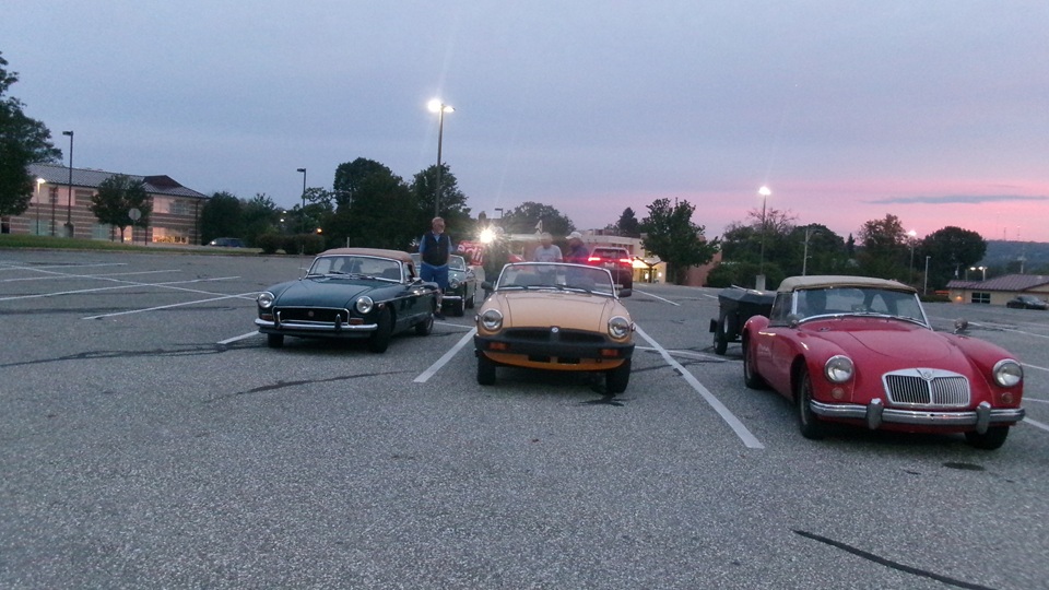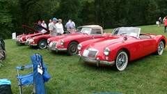 Seven MGA (that I could find, a white Coupe, a black Coupe, a BRG roadster, and four red roadsters, at least two were 1600-MK-II, one of which may have the earlier grille, no Twin Cam.