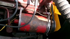 Push the generator inboard, and install the fan belt loosely over the three pulleys. Place a flat pry bar between the cylinder head and generator, and push the generator outboard to tension the fan belt, and be prepared to hold it in that position for a while (like helper on far side of car to pull on the bar with one hand). Be careful not to break the temperature sensor's small tube with the spiral wound wire wrap (photo at top of page). That is difficult and/or expensive to repair.