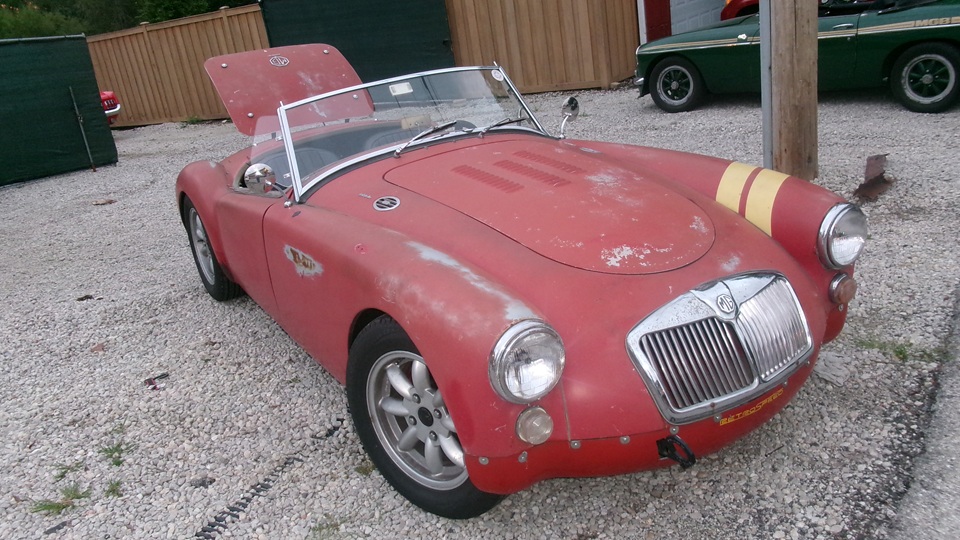 Here is an MGA 1600 with no notable dents, very little rust, lots of patina, a fairly valuable "survivor car". Looks like it may have some racing history early on with front wing side vents, bonnet louvers, racing stripes, alloy wheels, towing eye, fire extinguisher. Plan for this one is to clean it up best as possible and spray it with clear coat to preserve it. Should be an interesting project.