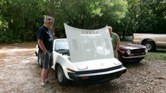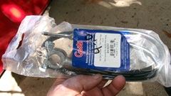 Then there were two half liter bottles of DOT 5.1 brake fluid. This stuff is glycol based fluid, one step up the performance scale from DOT-3 and DOT-4 fluid (definitely not DOT-5 silicone fluid). Apparently Jerry noticed some brake fade on his last race outing with the racing Rabbit, possibly due to some water absorption in his DOT-4 brake fluid (which had not been changed for some time). So he thought it might be good experience to try the DOT-5.1 fluid, just for kicks.