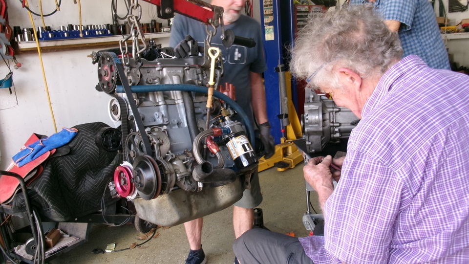 Navigator and i got busy changing our battery ground cable, long time overdue. It became more urgent a day or two ago when the car wouldn't start without aid of a small jumper box. Jerry was making good progress on the Sirocco engine, getting close to race ready again.