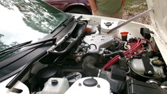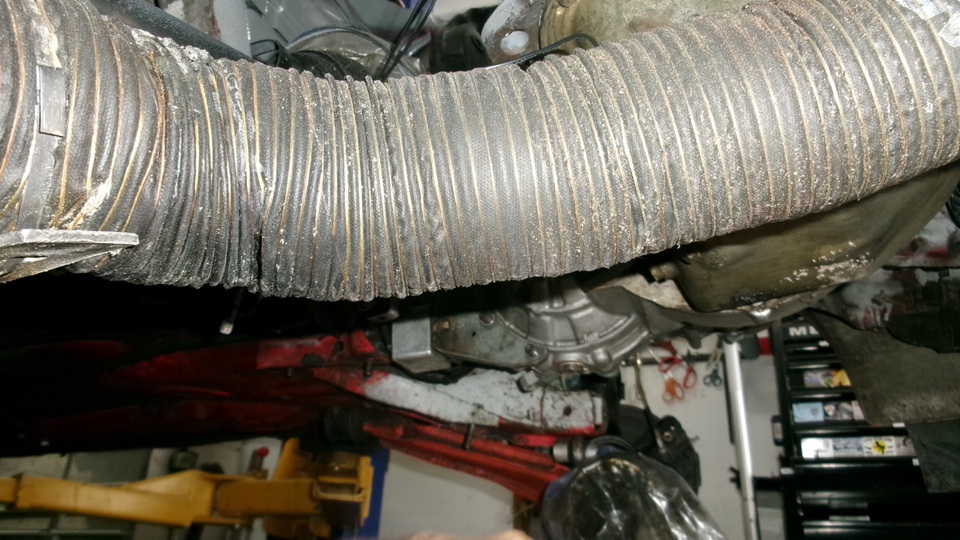 the guys got to work with the pneumatic bellows jack, which actually works quite well once you get the hang of it. Sometimes it may seem a little wobbly half way up, but it is easy to use and has nice high lift. Just be sure to use a good jack stand along with it. With one guy pushing pedal, one guy working a vacuum bleeder, two guys regularly refilling the small clutch master cylinder reservoir, it wasn't long to get the job done, and the clutch works well with no new parts required.