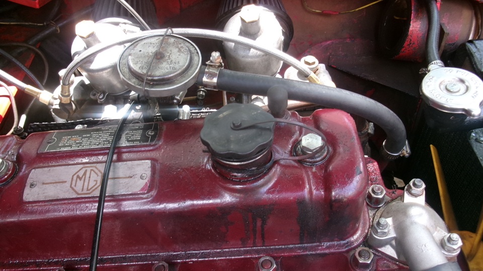 Then we got to reinstall the PCV valve.first installed on the 1800 engine in early November before the crankshaft break, but removed when we installed the loaner Magnette engine. Long ordeal since then, but now catching up lots of delayed maintenance. With the PCV valve on the 1800 engine, change carb metering needles to #5.
