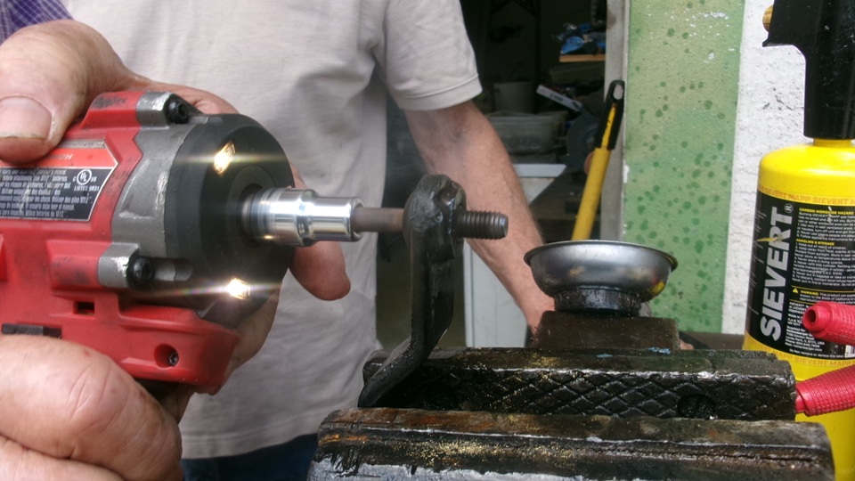 One more litle chore for the dy. These are clutch and brake pedals, maybe from Tina. The small shoulder bolts for pivot points were seized in the bushings (assuming there were bushings in there). Penetrating oil and a #40 Torx driver and small impact wrench was not moving it. Apply some heat until it smokes, followed by more penetrating oil, and then another shot with the small impact wrench got it moving. Drive until it spins, tap the bolt out, more P-oil, more spin until it turns free. give it a dab of grease, and repeat all with the second one.