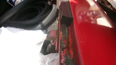 That incident would trigger a discussion and a quick tech session on a similar rust hole in the left side body still of the TR6. Jack it up for easier access, and grind away any abnormally thin rusted metal, keeping full thickness metal. Then grab an aerosol can of expand in place packing foam. Spray the expanding foam through the open hole to fill the cavity inside, until the foam is bulging out proud of the surrounding surface. When the foam has set up, dress it off with a spaghetti file, sand it flush, and it will be ready to smooth out with body diller, sand and paint. Crude maybe, but quick and effective for a not too expensive road car.