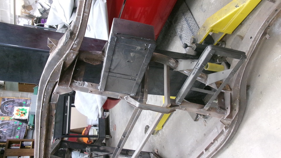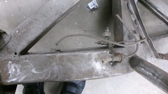 Yes, the rear axle is obstructing view of the body sill, but the body sills and door posts have been rebuilt. The frame has been repaired, about ready for cleaning and painting. The right side battery box was extended to accept a larger single 12-volt battery. The left side battery box has been modified to be a storage box.