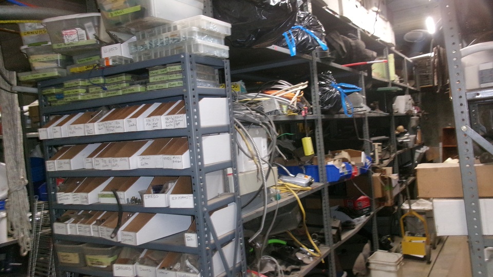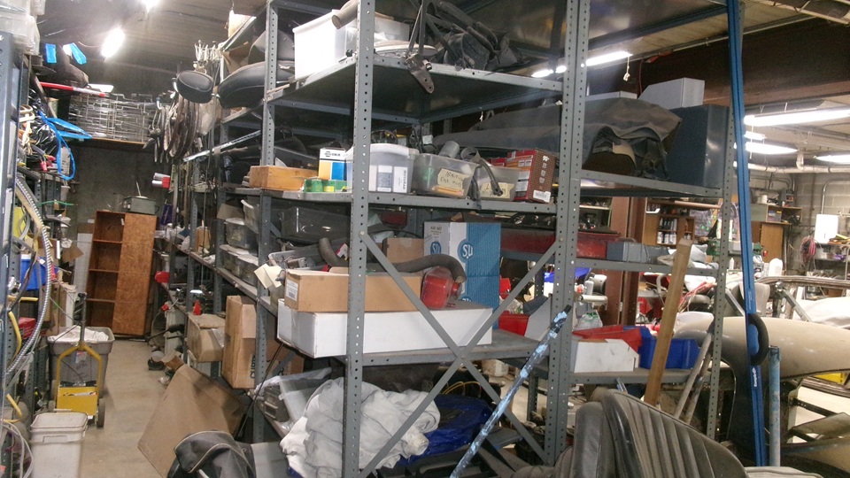 Step around the corner, and there are shelves full of parts. some of these will be re-assembly parts for the three MGA being presented here. But there are more parts as additional spares, a well as some parts for other cars. you may find something interesting in these pictures. Otherwise feel free to ask.