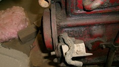 this gearbox is mid-1500 production, covering 40% of all MGA produced. 1-inch 10-spline input shaft with 5/8" spigot nose, correct front cover with original clutch release arm and release bearing is present. Low starter position, internal rear seal, 1-1/16-inch 10-spline output shaft, needs to be mated to mid-1500 propshaft with stamped bell shape dust cover. Notice the rear top aperture for attachment of the shift extension housing is covered with a cloth to keep dirt out during storage. For sure the remote shifter assembly will be around somewhere.
