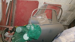 More body parts for the Coupe currently under restoration, the RF wing with a lower panel repair section already stitched in, more spare wings, boot lid and bonnet, two doors with complete roll-up window assemblies, and the fuel tank.