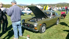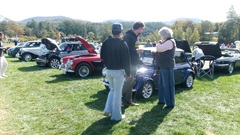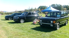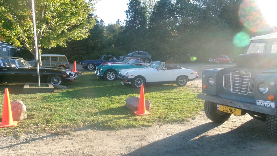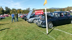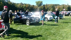 First incident for the week end was a dent in the LR fender of a Triumph, lightly grazed by a big Jaguar sedan. We picked up the registration packet, grabbed a beer and sat to chat with a few folks.