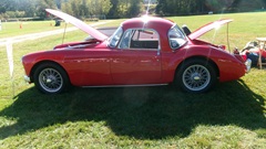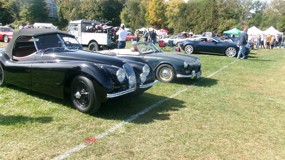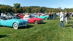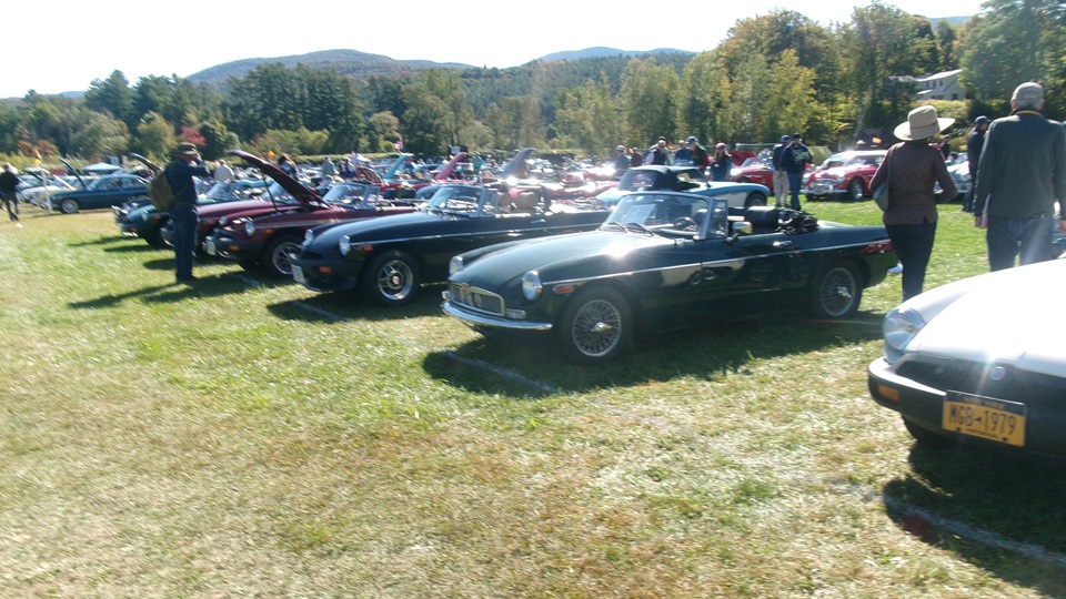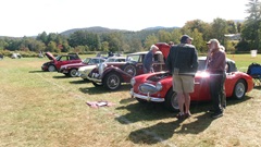 Breakfast in Morrisville, VT, then 10-miles south back to Stowe, VT for the car show. We had registration number 202, filed a month ago, so maybe 300 or so British cars present today (not counting a couple hundred visitor cars parked in the next field). After getting parked in the right line, next business was to walk around nearly two hours taking pictures of the show cars, mostly in small groups. Starting with MGA, see if you can count them, I'm not counting.
